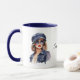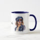 Caneca Na moda mulher Vestindo um chapéu