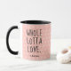Celebre o amor e a amizade com esta charmosa caneca de Dia de os namorados! "WHOLE LOTTA LOVE" está escrito em tipografia de na moda preto com seu nome e um bonito coração por baixo, fazer-o um presente sincero e pessoal. Perfeito para café, chá, ou cacau quente, esta caneca rosa com padrão de corações brancos adiciona muito talho a cada gole. Desenvolvido exclusivamente para você pelo Happy Dolphin Studio.