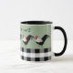 Nana Rule's the Roost Rooster Black White Name Mug, whimsical rooster design for your favorite rooster & chicken lover! Personalize for whomever rules the roost! Black white plaid check design on sage green.