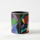 Pintura abstrata de vista retro das belas artes da modificação no acrílico que reproduz nesta caneca como se era uma tapeçaria porque o weave das canvas mostra. Efeito muito interessante. Parte de uma série de pinturas.