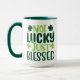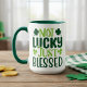 Esta caneca fofa apresenta um gráfico divertido que diz "Não é a sorte simplesmente abençoada" em diferentes tons de verde com sotaques de trevo. Perfeito para a época do Dia de São Patrício!