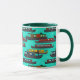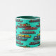 Canal boat and narrowboat owners will love this mug! It features a pattern of lots of colourful, hand drawn canal boats floating along the blue waterway. Look closely and you'll also see some cormorant birds on the boats, with their wings spread
