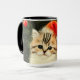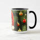 Coffee Mug apresentando um gatinho natal vintage! Este gatinho adorável veste um chapéu de Papai Noel e se senta em uma árvore de Natal decorada com ornamentos. Um presente maravilhoso para a época de Natal e amantes de gatos!