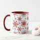 Esta é uma bela caneca com um padrão de floco de neve em vermelho escuro/bordô, em um fundo branco. Aproveite suas bebidas quentes nesta caneca festiva.