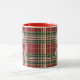Uma xadrez de férias em tons vermelhos e verdes cria uma sensação festiva de Natal para colocar o palco para este lindo cão Cairn Terrier vestido para a estação num chapéu de Natal de férias.