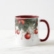 Esta caneca de Natal é um belo encapsulamento do espírito de Natal. Apresenta decorações de Natal vermelhas num galho da árvore de Natal. Feliz Natal e Feliz ano novo!