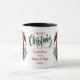 Quem ama cavalos amará essa bonito caneca de Natal. De dois lados está um bonito cavalo branco com um halter vermelho e um chapéu de Papai Noel. A imagem é emoldurada por pinheiros e bagas vermelhas. Entre as imagens está uma mensagem de Feliz Natal e seu texto personalizado. Perfeito para crianças ou adultos; faça-o dizer o que quiser!