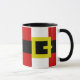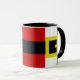 Esta caneca do divertimento é dentro o terno para o papai noel do veludo vermelho, aparado na pele branca com uma curvatura do cinturão negro e do ouro para muito Feliz Natal, há uma placa de harmonização: caçoa o feriado engraçado dos miúdos dos adolescentes das mulheres dos homens das meninas dos meninos