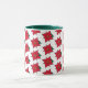 Um padrão de poinsettia de Natal decora esta caneca de café de férias. O design é da arte original.