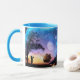 Esta pintura comemora a viagem em curso da nave espacial Voyager, gêmea da NASA, à medida que eles se viagem para a borda do nosso sistema solar e para a fronteira externa conhecida como espaço interestelar, mostrando a transição da humanidade de veleiros antigos que mapeiam novas terras para aventureiros modernos que sonham em explorar o cosmos.
