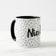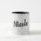 Caneca personalizada para donos de gatos e cães. Tem um padrão de estampa de pata cinza ao fundo. Você pode personalizar trocando o nome Nicole por um nome à sua escolha. Caso você se chame Nicole ou queira presentear alguém com esse nome, pode deixar como está.