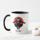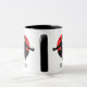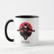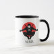 This mug features a bold ninja graphic: a crouching silhouette with shurikens in hand, twin swords on the back, and a white mask for contrast. Set against a red sun circle, the design blends traditional Japanese iconography with modern minimalism. The word “NINJA” anchors the composition in strong, black lettering — perfect for martial arts fans or lovers of stealth aesthetics