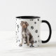 Um lindo Cachorro de Ponteiro Alemão Cabeado Senta em dois lados desta caneca. O texto entre as duas imagens diz "No oitavo dia, Deus criou o WIREHAIRED POINTER e o chamou de MUITO BOM". As imagens do cão e o banner branco oval que contém os campos de texto são colocados sobre um fundo branco com impressões de pata preta.