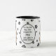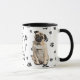 Um Cachorro Pug adorável olha para você de dois lados desta caneca. O texto entre as duas imagens diz "No oitavo dia, Deus criou o PUG e o chamou de MUITO BOM". As imagens do cão e o banner branco oval que contém os campos de texto são colocados sobre um fundo branco com impressões de pata preta. Bonita!