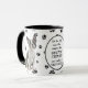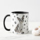 Um adorável cachorro de Boston Terrier Cachorro fica em dois lados desta caneca. O texto entre as duas imagens diz "No oitavo dia, Deus criou o BOSTON TERRIER e o chamou de MUITO BOM". As imagens do cão e o banner branco oval que contém os campos de texto são colocados sobre um fundo branco com impressões de pata preta.