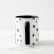 Um lindo Cachorro German shepherd olha para você de dois lados desta caneca. O texto entre as duas imagens diz: "No oitavo dia, Deus criou o GERMAN SHEPHERD e o chamou de MUITO BOM". As imagens do cão e o banner branco oval que contém os campos de texto são colocados sobre um fundo branco com impressões de pata preta. Bonita!