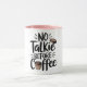 Start your day right with this humorous "No Talkie Before Coffee" T-shirt. Perfect for coffee lovers and those who need a little caffeine boost to get their words flowing.
