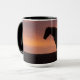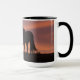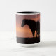 Um garanhão solitário sobre uma cordilheira enquanto o sol se põe em McCullough Peaks.