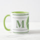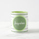 Monograma inicial em verde macio de ambos os lados. Nome na escrita branca no centro dos círculos verdes geométricos. Listras geométricas verdes e prateadas. Misture e combine padrões. Designs originais por TamiraZDesign.