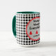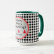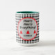 Um padrão clássico de verificação de búfalos preto e branco com quadros circulares vermelhos e cinzas e mini árvores de Natal. "Feliz Feliz Natal" e o nome estão em uma fonte negra moderna. Altere facilmente o texto e o nome para torná-lo seu usando o Modelo fornecido. Use letras minúsculas para nome se precisar de mais espaço. Esta é uma grande caneca de bebida de cor combinada de 15oz, escolha entre 5 cores para dentro e alça. Um 11oz menor também está disponível com uma escolha de 10 cores. Consulte "Sobre este produto" ao lado para obter mais informações.