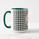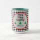 Um padrão clássico de verificação de búfalos preto e branco com quadros circulares vermelhos e cinzas e mini árvores verdes de Natal. "Feliz Feliz Natal" e o nome estão em letras negras elegantes. Altere facilmente o texto e o nome para torná-lo seu usando o Modelo fornecido. Esta é uma grande caneca de bebida de cor combinada de 15oz, escolha entre 5 cores para dentro e alça. Um 11oz menor também está disponível com uma escolha de 10 cores. Consulte "Sobre este produto" ao lado para obter mais informações.