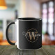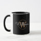 Caneca clássica preta e dourada com monograma. Você pode personalizar o nome, monograma e personalizar a fonte e as cores para criar seu próprio design exclusivo. Criado por Thisisnotme©