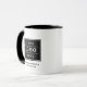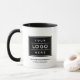 A caneca de café personalizada de duas faces apresenta o design de logotipo profissional da sua empresa juntamente com o nome comercial e outras informações que podem ser personalizadas. Basta adicionar o logotipo de sua empresa ao espaço de imagem de marcador de posição preto e incluir seu slogan, site ou outro texto preferido.