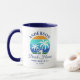 Caneca Nome da família Beach House Sun Palm Trees Blue