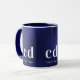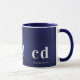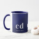 Um fundo azul marinho. A cor azul é irregular. Personalize e adicione um nome e iniciais de monograma (x3). O nome é escrito em branco com letras modernas de blocos.