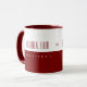 Meio vermelho escuro moderno e meio caneca branca personalizada com seu próprio nome e profissão (arquiteto). Adicione seu nome e faça dele seu! Esta caneca personalizada é excelente para uso diário e faz um presente divertido para amigos, familiares ou colegas de trabalho. Basta digitar o nome e criar uma caneca de nome personalizada que seja única, útil e totalmente você. Perfeito para o café da manhã, chá ou escritório.