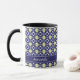 Mug moderno de padrão floral marroquino azul e amarelo. Personalize com seu nome.