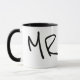 Um design simples com suas iniciais e nome manuscrito em preto em uma caneca B/W