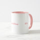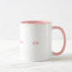Um fundo branco claro para personalizar com nome rosa e letras iniciais. Faça dela uma caneca de café especial