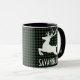 Adicione um toque festivo às suas manhãs de Natal com esta charmosa caneca de Natal xadrez! Apresentando um clássico fundo verde e xadrez de búfalo preto, uma ousada silhueta de renas brancas, e seu nome personalizado, esta caneca acolhedora é perfeita para colher cacau quente, café ou chá a toda a estação. A design é impressa em ambos os lados, fazer-a um maravilhoso presente personalizado para amigos, família, colegas de trabalho, ou até mesmo para você mesmo. Durável e na moda, esta caneca traz alegria rústica a cada gole e faz um cuidador de estocagem ou adição festiva à sua coleção de cozinha. Edite texto da página do produto ou altere o estilo da fonte, ou co, ou use a ferramenta design.