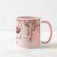 Nosso design apresenta nossos próprios olhos fechados originais e lascas com sombra ofágica. Lindos elementos de pó cor-de-rosa-pincel são adicionados ao design de fundo para criar um olhar de luxo e glamour. O design de pingar rosa Dourado, pingado, envolve o topo da caneca de café. Personalizado com seu nome. presente perfeito para aniversários, chá de panela, casamento etc. Trabalho de arte por Moodthology.