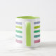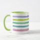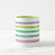 Uma caneca listrada monograma decorada com traçados de tinta feitos em tons macios de aquarela em padrão horizontal.