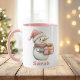 Caneca Nome Personalizado do Boneco de Neve Rosa de Natal