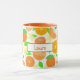 Uma linda caneca de fruta laranja para trazer felicidade no seu café. Adicione seu nome ou texto, altere a cor do plano de fundo e aproveite!