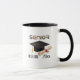 Nome pessoal, Mais velho formado em 2023 Mug Esta moda, elegante formando partidária Mug apresenta uma foto de ano do formando 2023 e uma segunda, apagada, foto. Na frente, há um falso roteiro casual do americano Fontlook, junto com o ano de graduação, escola e aula. Na parte traseira está o nome do formando com todas as informações de sua parte claramente impressas sobre ele em uma sobreposição. Um na moda e um simples Mug de graduação que realçará suas fotos pessoais favoritas do formando!, Clique no botão editar para personalizar este design.