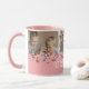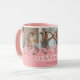 Caneca de avó moderna com uma colagem fotográfica dos netos, um design de coração rosa giro, o ditado "nós te amamos avó", e os nomes das crianças.