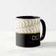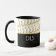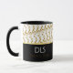 Seu nome e iniciais em uma faixa grande preta com notas de ouro