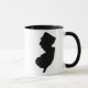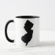 A forma do estado de Nova Jersey em preto e branco. Você pode alterar a cor do plano de fundo ou adicionar uma mensagem de texto de souvenir personalizada.