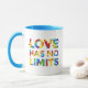 Este design apresenta a frase "O amor não tem limites" formada em cores coloridas do arco-íris.