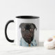 Vida do Pug. Imagem preta bonito da foto do cão do pug. Está vestindo uma jaqueta de brim que o faça olhar um gângster do bocado e resistente. "Adicione o texto" aprontam-se para que você adicione todo o texto ou personalizem-no com seu nome.