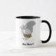 A caneca de café branco com punho preto e o bordo aparam no preto. Imagem do esquilo dos desenhos animados em troncos de natação do impressão do leopardo. Dizer: Loucos obtidos?