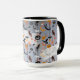 Partido do "caneca de café decorativa do design na moda deleite do Dia das Bruxas da caneca de café ou do truque" - com abóbora do Dia das Bruxas, mulher mágica da bruxa do Dia das Bruxas, bastão, teste padrão da Web de aranha. Emulation de madeira abstrata da textura, fundo, símbolos do Dia das Bruxas, ilustração, tirando. Design surpreendente do sótão. Design moderno para a casa, a cozinha & o jantar, o Drinkware, as canecas & os copos. Caneca de café do Dia das Bruxas.