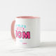 A melhor ideia de presentes da mãe do mundo personalizado, "Mamãe Coffee Mug". Excelente ideia de presente para um presente de mãe. A exibição é cor-de-rosa, design azul com um Nome personalizável para você escrever antes de doar. Presente ideal para ela para dia de as mães, aniversário, aniversário ou Natal. Você não precisa de um dia especial para dar esta caneca de novidade personalizada e barata para a mãe a qualquer dia para que ela saiba que ela é especial, apreciada e que você a ama. Presente popular para a mãe. Clique em personalizar e seu nome, texto ou foto para personalizar e personalizar este presente-mãe agora!