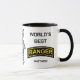 Esta caneca Ranger apresenta um logotipo preto e amarelo com um nome personalizado e um soldado.