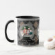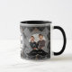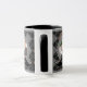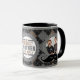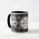 Dois bigodes com o nome da criança, suas fotos em ambos os lados e o centro "Melhor Irmão Grande do Mundo" na caneca em um impressão de argila masculina no camelo, que bronca com tons de elogio de cinza clara e escura. presente divertido para o irmão mais velho.