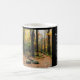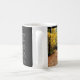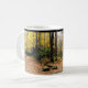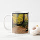 Caneca - poema por Robert Frost e por uma cena da paisagem de duas estradas que divergem em um outono, madeira amarela.